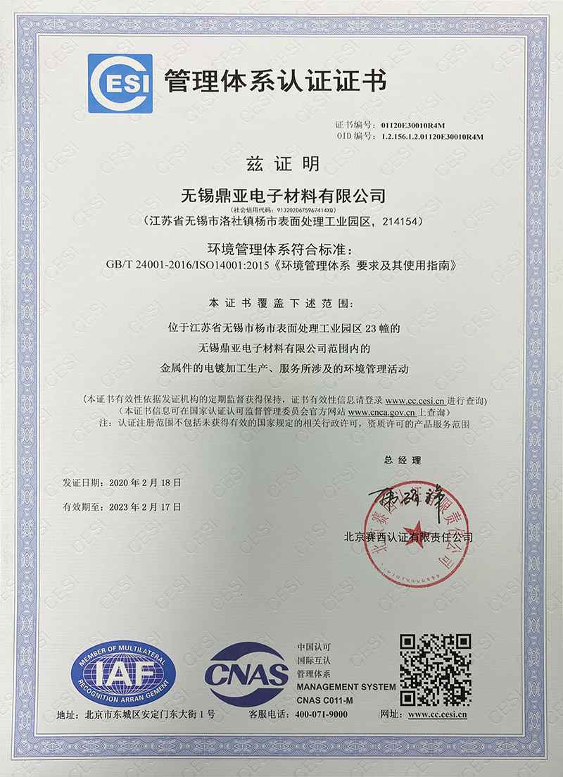 管理体系认证证书